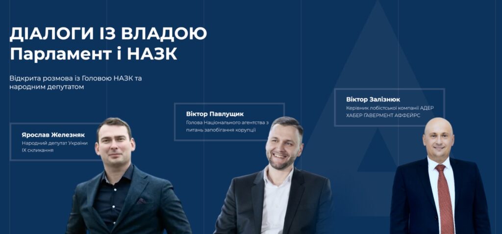 On October 29, Kyiv hosted an open discussion titled “Dialogues with the Authorities: Parliament and NACP,” dedicated to the first results of the implementation of the Lobbying Law and practical rules for interaction between business and government institutions. The speakers included Yaroslav Zheleznyak, First Deputy Head of the Verkhovna Rada Committee on Finance, Tax, and Customs Policy, and Viktor Pavlushchyk, Head of the National Agency on Corruption Prevention (NACP). The discussion was moderated by Viktor Zalizniuk, Head of Ader Haber Government Affairs. The event was announced by leading business associations and media platforms, including AmCham and the European Business Association (EBA).